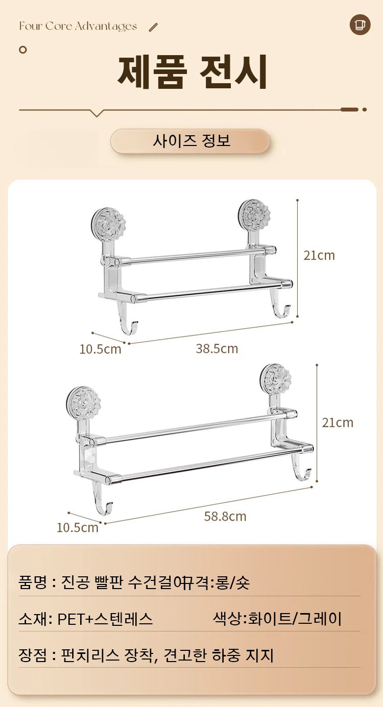 간편 설치 가능한 진공 수건걸이